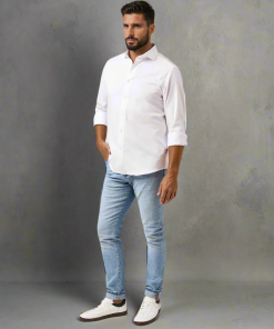 The MONARCH White Heritage Long Sleeve Shirt is a refined update on the classic White Shirt, crafted exclusively for our eCom store and unavailable elsewhere. Distinguished by subtle accents, it features red piping inside the neckline, Elevating this timeless piece with a touch of bold sophistication that enhances your wardrobe with understated elegance.