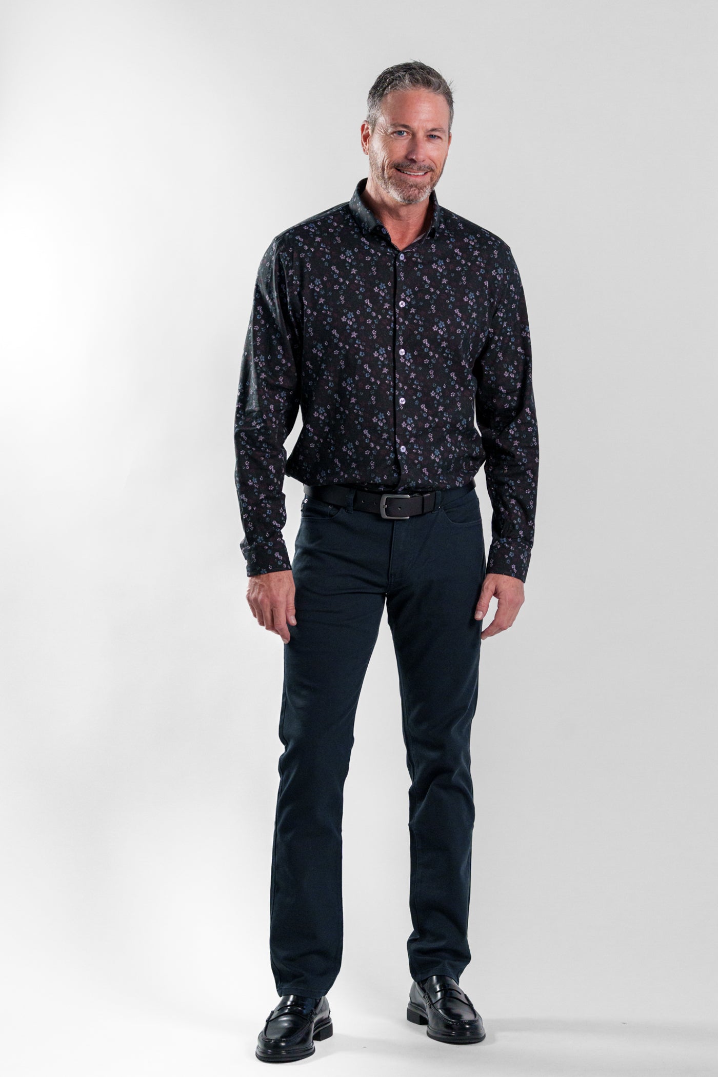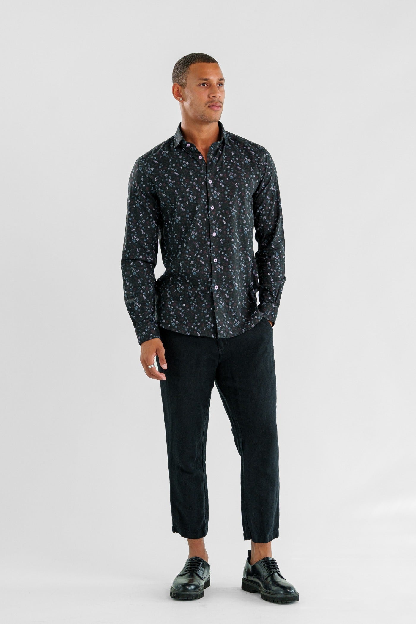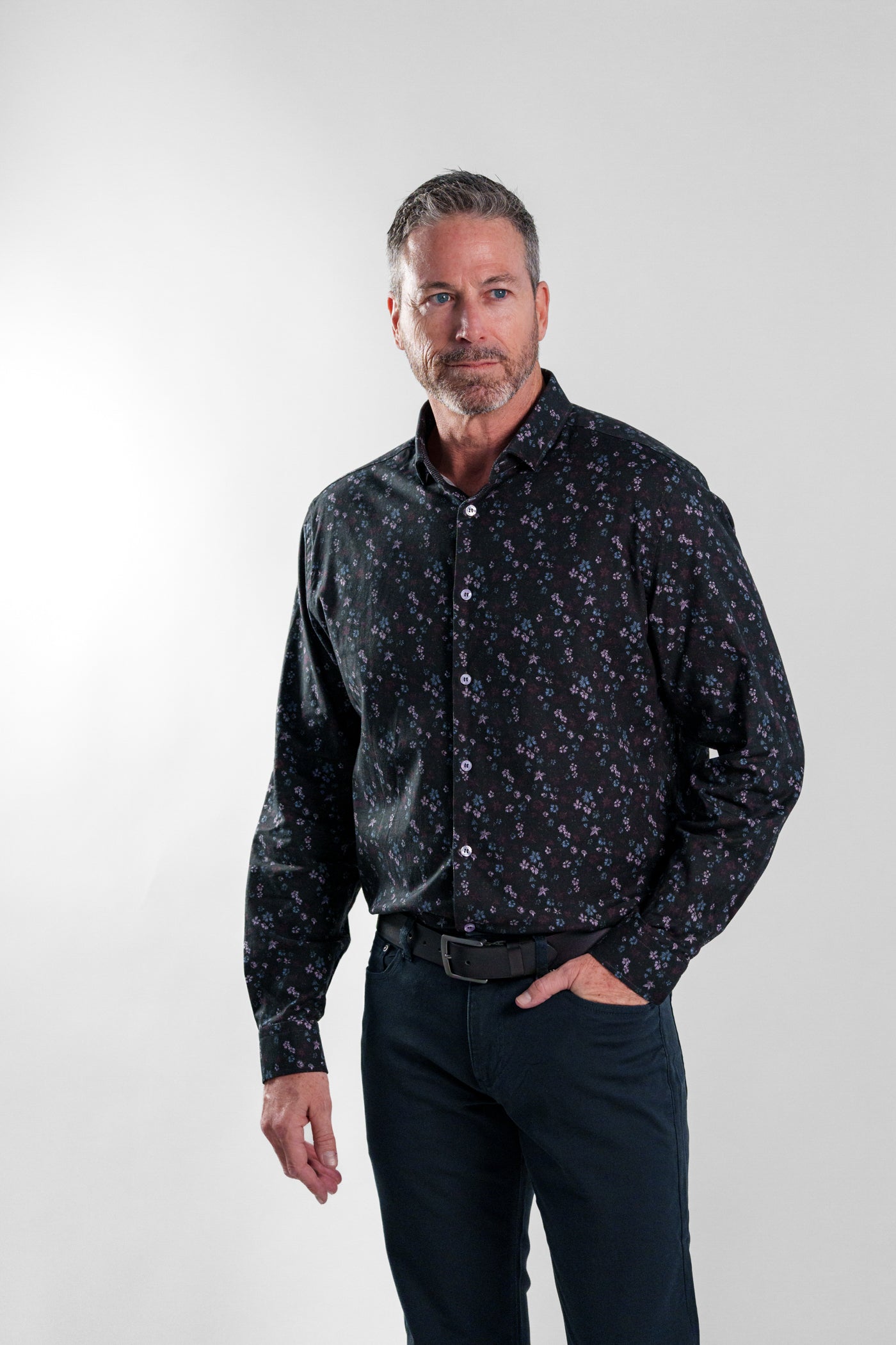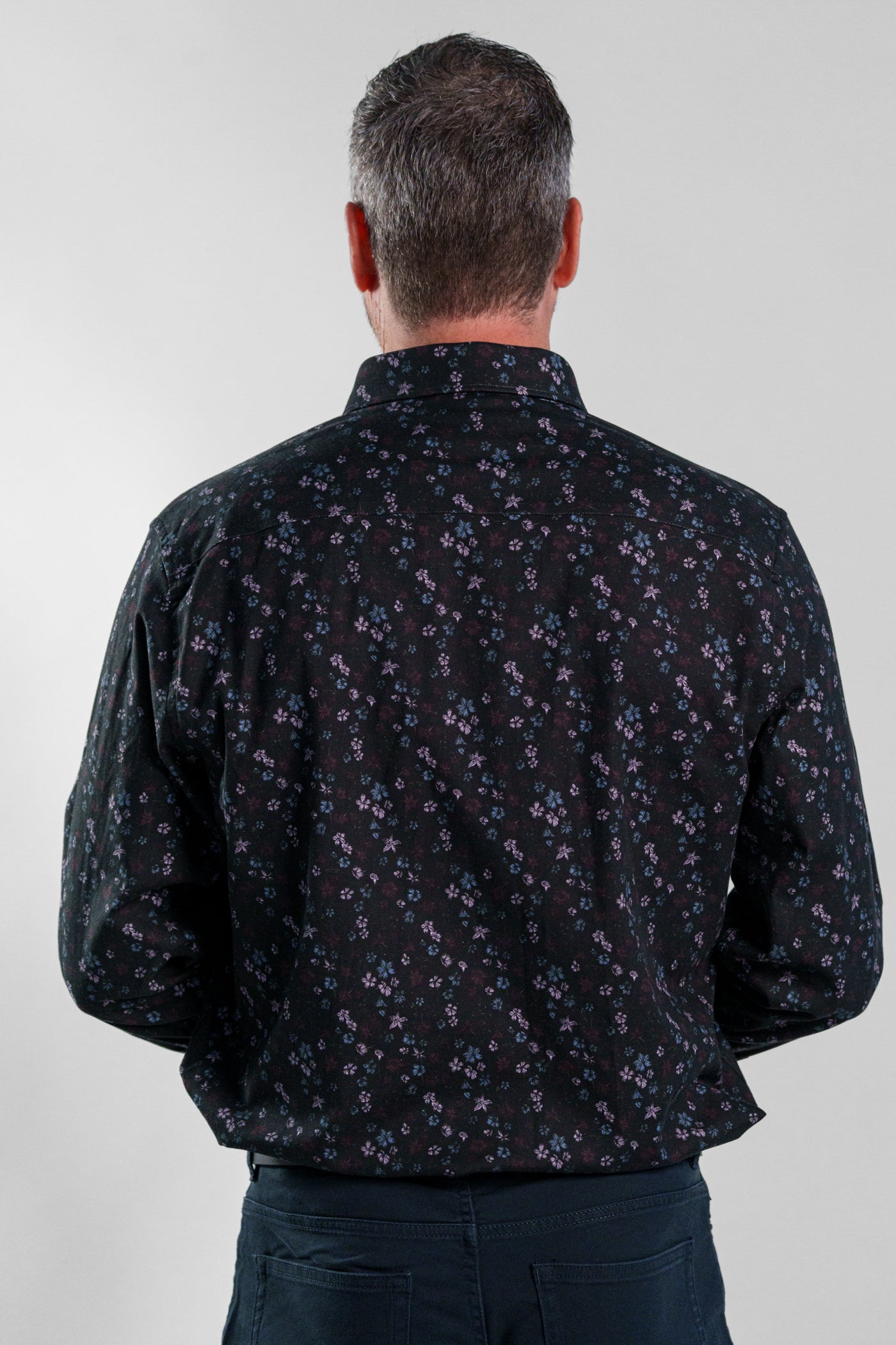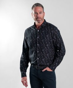 Eco-FriendlyExpertly crafted from soft and sustainable organic cotton, the NOVA Black Floral Long Sleeve Shirt offers both style and conscience. Tencel, a fiber derived from eucalyptus tree wood pulp, is naturally breathable and moisture-wicking, creating a peachy, drapey fabric perfect for year-round wear. With a delicate floral pattern and long sleeves, this shirt is perfect for any occasion. Make a statement while reducing your carbon footprint.ContentElevate your wardrobe with this new Eco Blend 70% Cotton 27% Tencel and 3% Elastane Printed Long Sleeve Cotton Tencel Twill Shirt from Stone Rose, combining style, comfort, and sustainability.Care