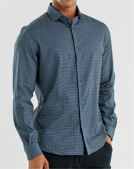 NOVA – Dark Blue Geo Long Sleeve Shirt