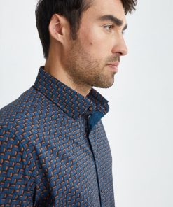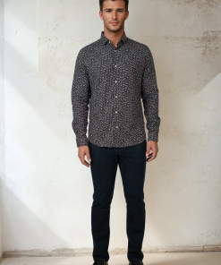 The NOVA – Dark Navy Meadow Ditsy Shirt from our Nova Collection is designed with an elegant drape and a smooth, peachy finish. Its clean silhouette and modern feel make it a versatile option for both casual and elevated looks.