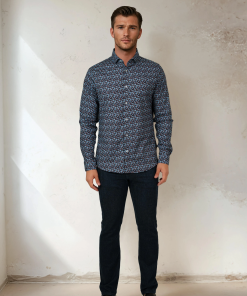 NOVA – Dark Navy Snowbrush Printed Shirt