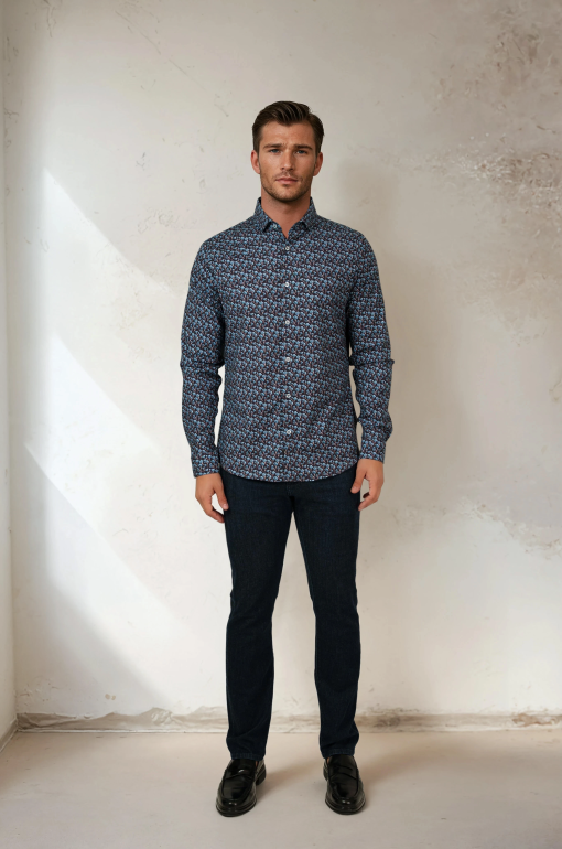 NOVA – Dark Navy Snowbrush Printed Shirt