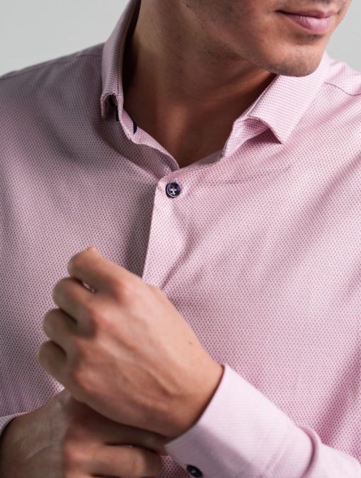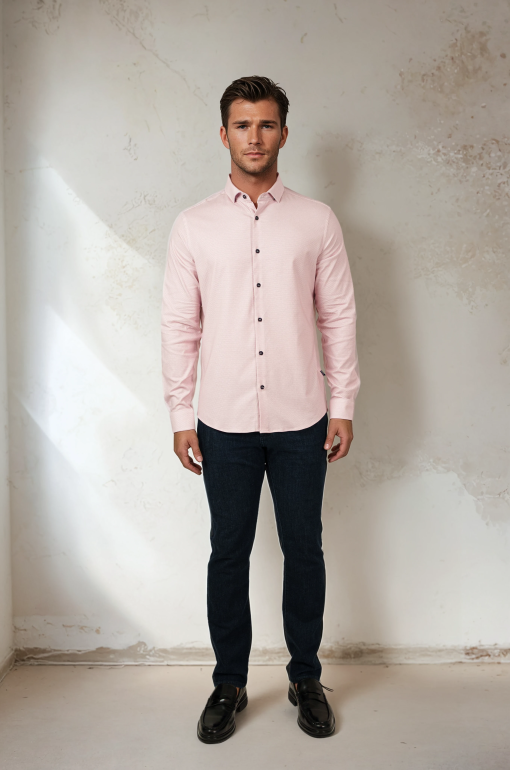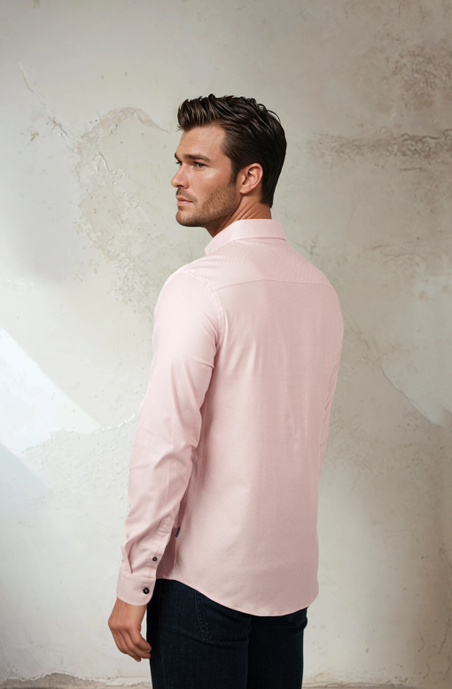 The NOVA – Light Pink Micro Diamond Shirt from our Nova Collection is designed with an elegant drape and a smooth, peachy finish. Its clean silhouette and modern feel make it a versatile option for both casual and elevated looks.
