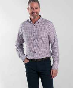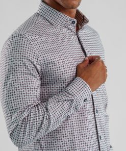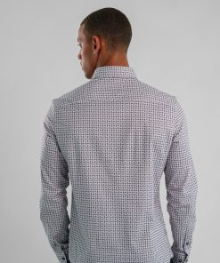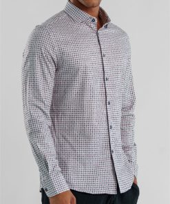 Introducing the NOVA Collection Navy Wireframe Long Sleeve Shirt. With its eye-catching geometric print, you’ll make a statement anywhere you go. Perfect for work or play, this playful and versatile design is sure to turn heads. Stand out in style with this must-have piece.